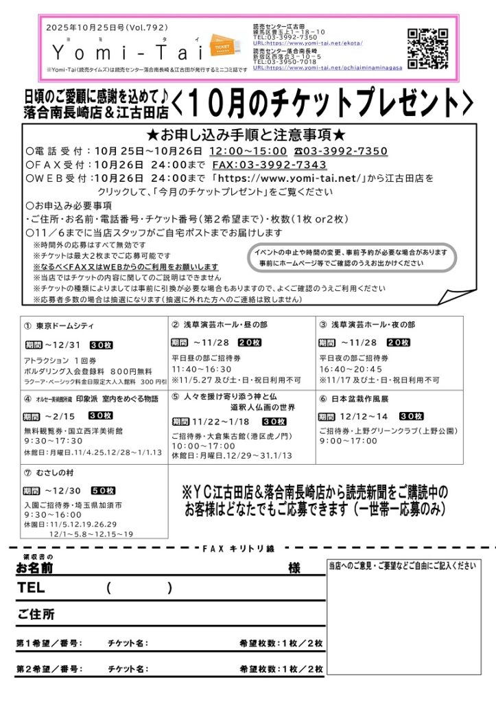 新聞のご購読のお申し込み・お問い合わせは、読売センター江古田へ
