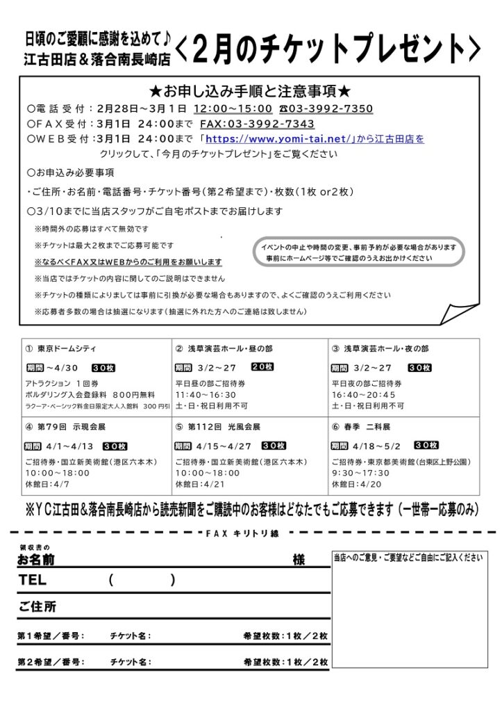 新聞のご購読のお申し込み・お問い合わせは、読売センター江古田へ