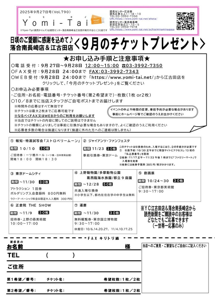 新聞のご購読のお申し込み・お問い合わせは、読売センター江古田へ