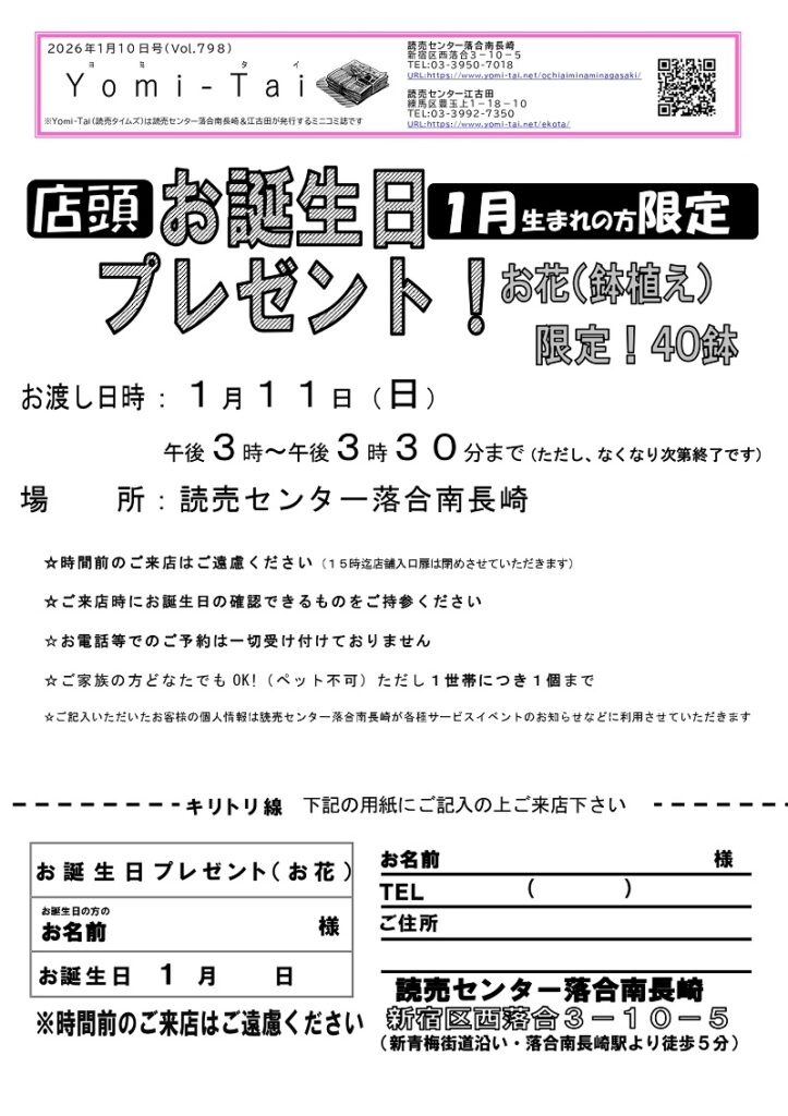 新聞のご購読のお申し込み・お問い合わせは、読売センター落合南長崎へ