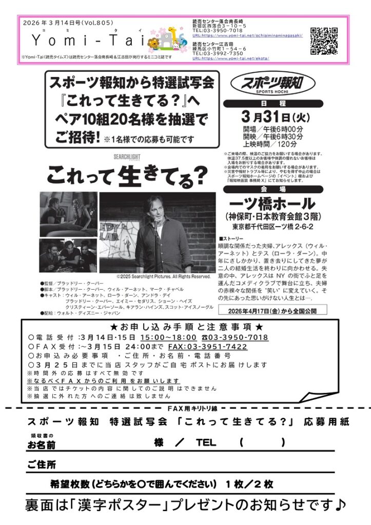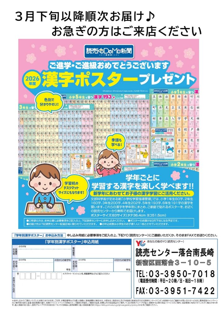 新聞のご購読のお申し込み・お問い合わせは、読売センター落合南長崎へ