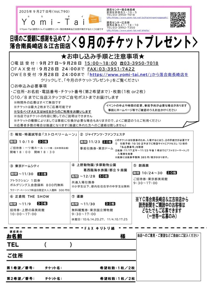 新聞のご購読のお申し込み・お問い合わせは、読売センター落合南長崎へ